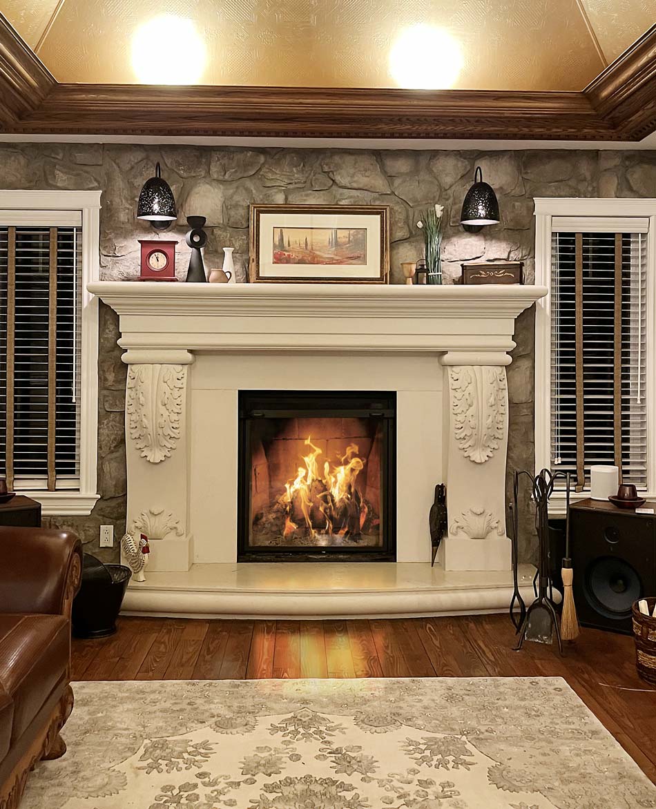 Paradis et pattes galbée avec bague + plaques + base arquée en marbre + Over Mantel
